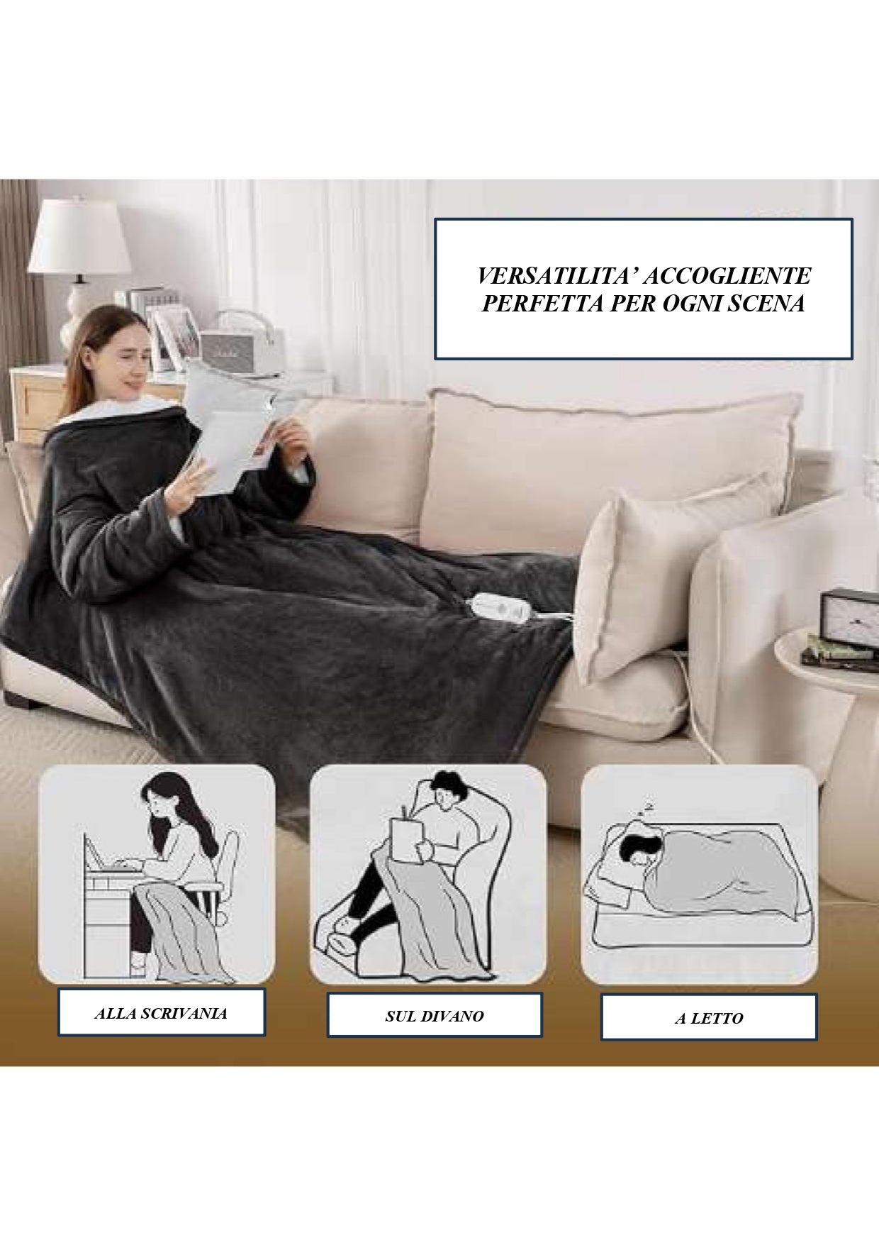 la nostra coperta si adatta perfettamente a qualsiasi situazione: mentre siamo a lavoro, se vogliamo guarda un film sul divano, se vogliamo leggere un libro. Questa coperta un tocco di stile senza rinunciare alla comodità e il benessere.